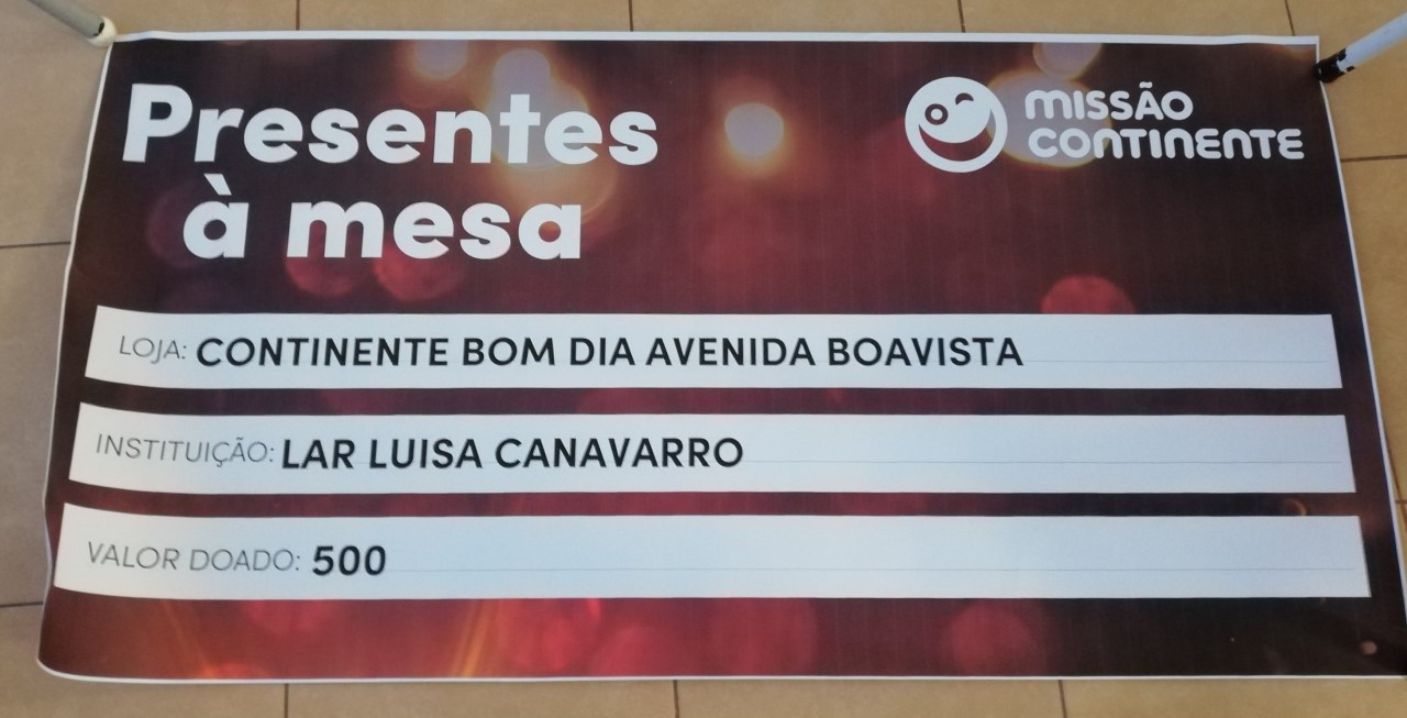 O Lar Luisa Canavarro foi escolhido para a Campanha de Natal da Missão Continente “Presentes à Mesa” que decorreu na loja Continente Bom dia – Cufra, entre 28 de Novembro e 8 de Janeiro.